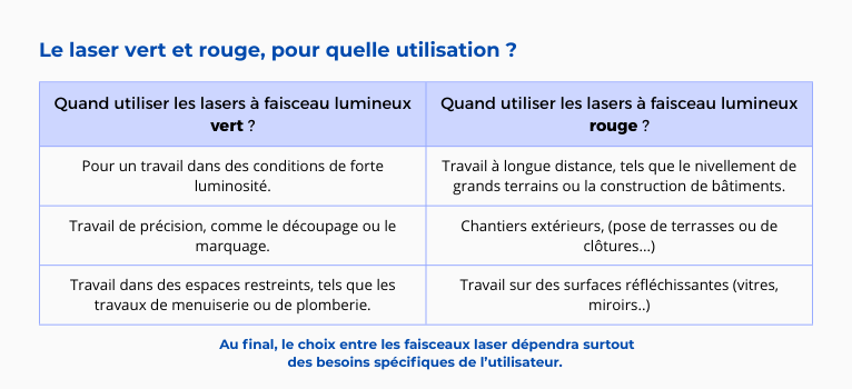 Les lasers rouges, quant à eux, offrent une meilleure portée et restent idéaux pour les